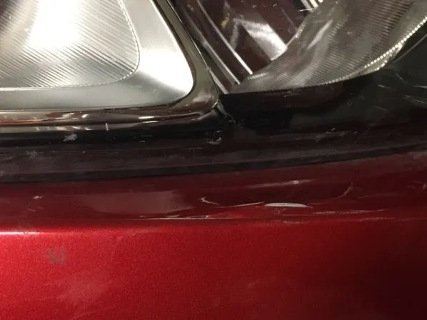 After washing my car today I found several strange scratches below my front light. They look pretty bad as I can see the metal inside. Also I can see a small dent on the scratch. I totally had no idea what happened. I never hit my car before.