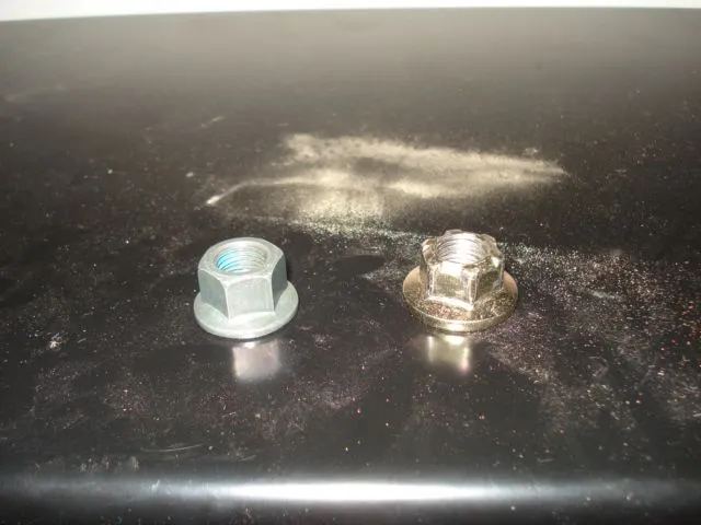 Bala - Thanks for your help! The washer got shifted when I originally put on the nut. I undid it and it was wedged up on the threads. Had to hammer it back out but now its flush with the bottom. And for good measure I used the OEM nuts. Thanks again!