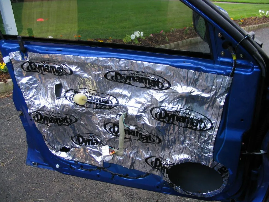 Anyway, I'm kinda slow. I started at 11:30 and the wires had already been run to the front of the car. By 4:30 I had the passenger side door finished. It took me a while to just make the baffles. By 6:30 I was done with the driver's door but it took me another 2 hours to clean up (vacuum all the sawdust and crap, put everything away, etc).
