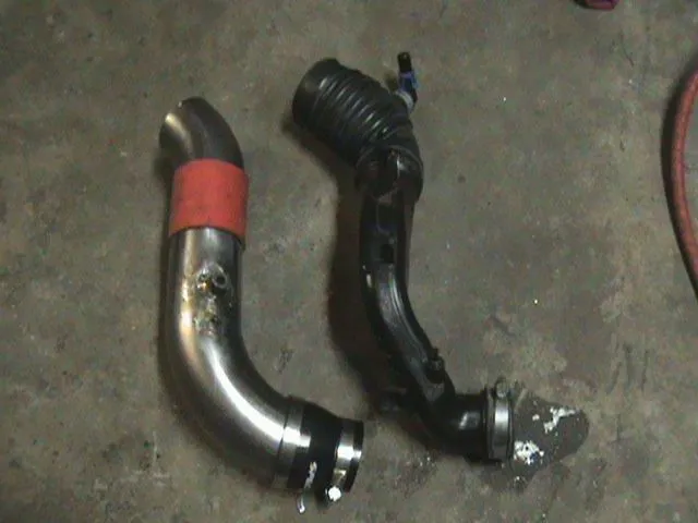 Well i got really bored tonight and started playing with my welder LOL. Ive been allittle upset because Cobb has not release there intake yet for the MS3, and im sick of waiting. Ive seen that some company makes a turbo inlet pipe that works with the stock airbox and makes decent power too, so i decided to try and make my own sense im stuck witk the stock airbox for awhile, i figured i might as well make the best of it. I discovered that there is actually room to run a 3'' diameter pipe from the turbo right to the air box with allitlle creativity. I had some let over stainless steel mandrel bends from my custom TBE that i made earlier. i just had to buy a silicone adapter that converts the 3'' to alitte under 2.5 for the actual turbo inlet. I also had to weld in a few fittings, one for the BPV recirculation and one for the FBC and the PVC system. This is what i came up with. So far so good, i havent had time to really test drive it yet but i will tommorow and post results. lemme know what u think so far. thanks