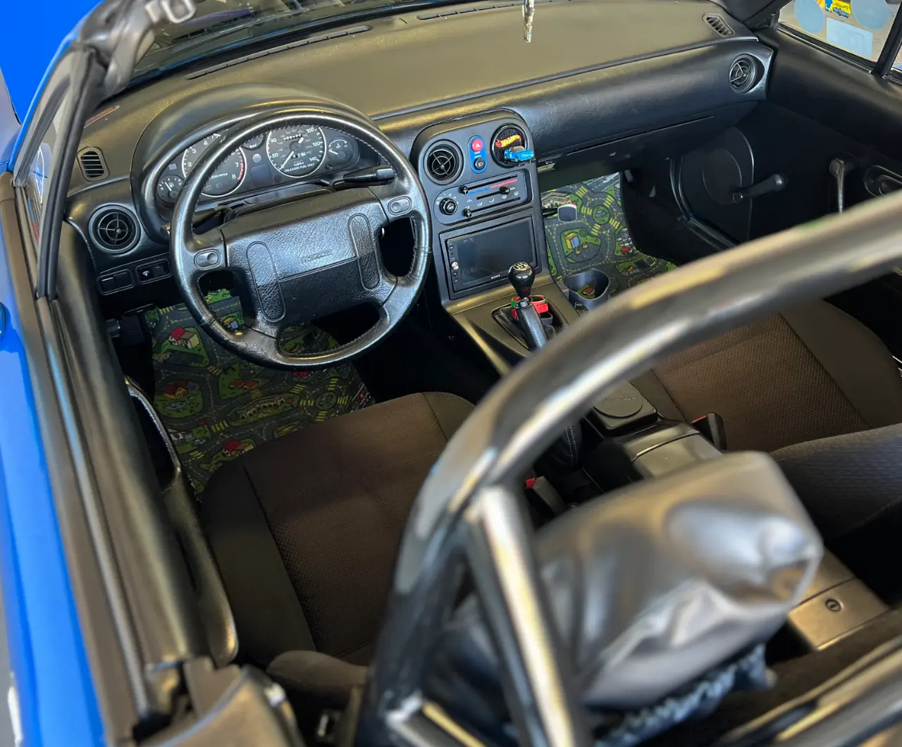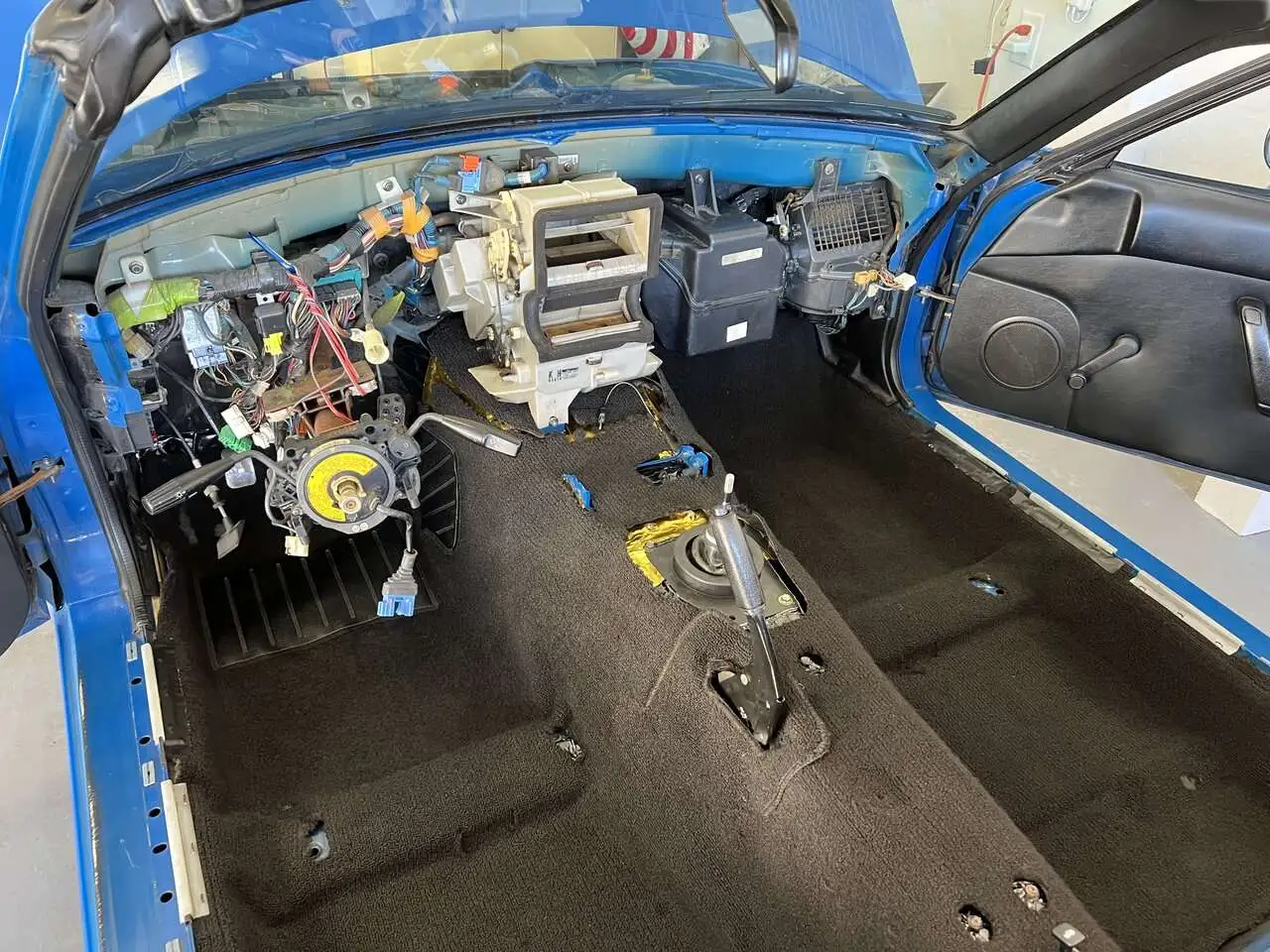 The dash is in great shape, no cracks. I got a replacement HVAC control panel. The one on the car was completely worn off. I did buy a used center console and cup holder. I also got a used but in great shape, steering wheel with airbag for cheap! The soft top needs a good cleaning and maybe some vinyl “refreshing”.