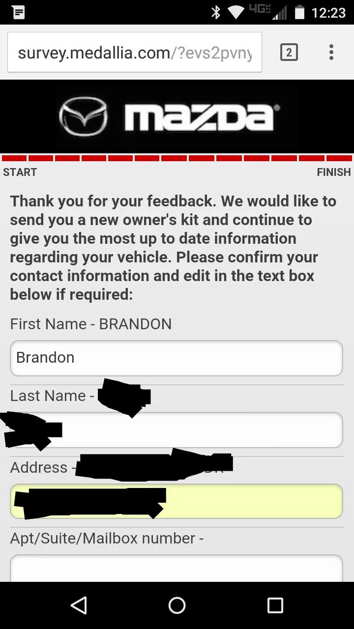 Just completed a survey on my experience with the dealer and purchasing my cx5. Then I got this form. It says at the top about getting a welcome kit. Maybe this is what determines whether some of us have and haven't gotten one, and whether you've completed a survey. Will see how long it takes to get mine.