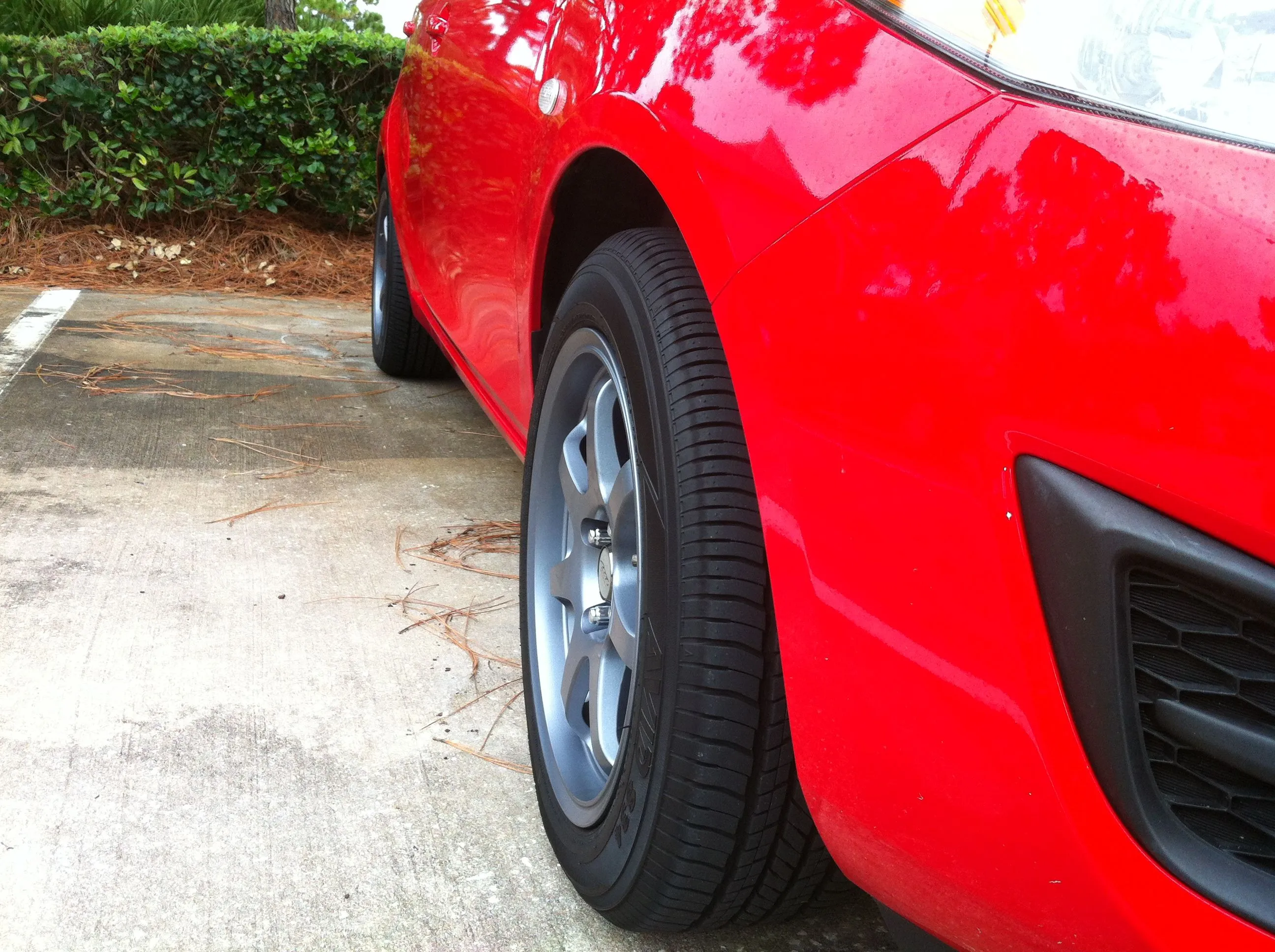 Just installed some MB Weapons. They are 15x7 +35 offset on stock tires for now. The car is on Racing Beat springs. Pardon my finger in the corner of the side shot. I got a little excited.
