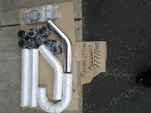 CX racing hardpipe kit 2.5 In. diameter. Only used 3 or 4 pipes from this kit. What's shown is what's included. 2 straight pipes, 2 45 degree pipes, and 1 J bend pipe. Pipes shown haven't been used. The one outside the packaging has a few minor scratches. Comes with 7 brackets, 6 straight couplers, and one 45 coupler. -$50 Firm
