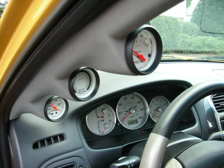 those gauges look good MSP#735, but i think what would make them perfect would be if you were able to paint the rings to match the stock gauges. I have the opposite problem... my gauges came with a nice silver ring, but i don't have gauge rings in the cluster.