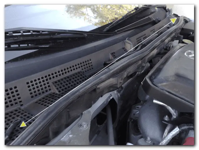 What about bringing the cable up under the big black plastic thing by the windshield wipers? I pulled a small part of it up and it looks like it'll be easy enough to remove (or pry up if nothing else) and it seems like there will be plenty of room. To get the wire in there may require drilling a hole in the plastic (big woop right?). Also, this thing is made of plastic, it must say pretty cool.