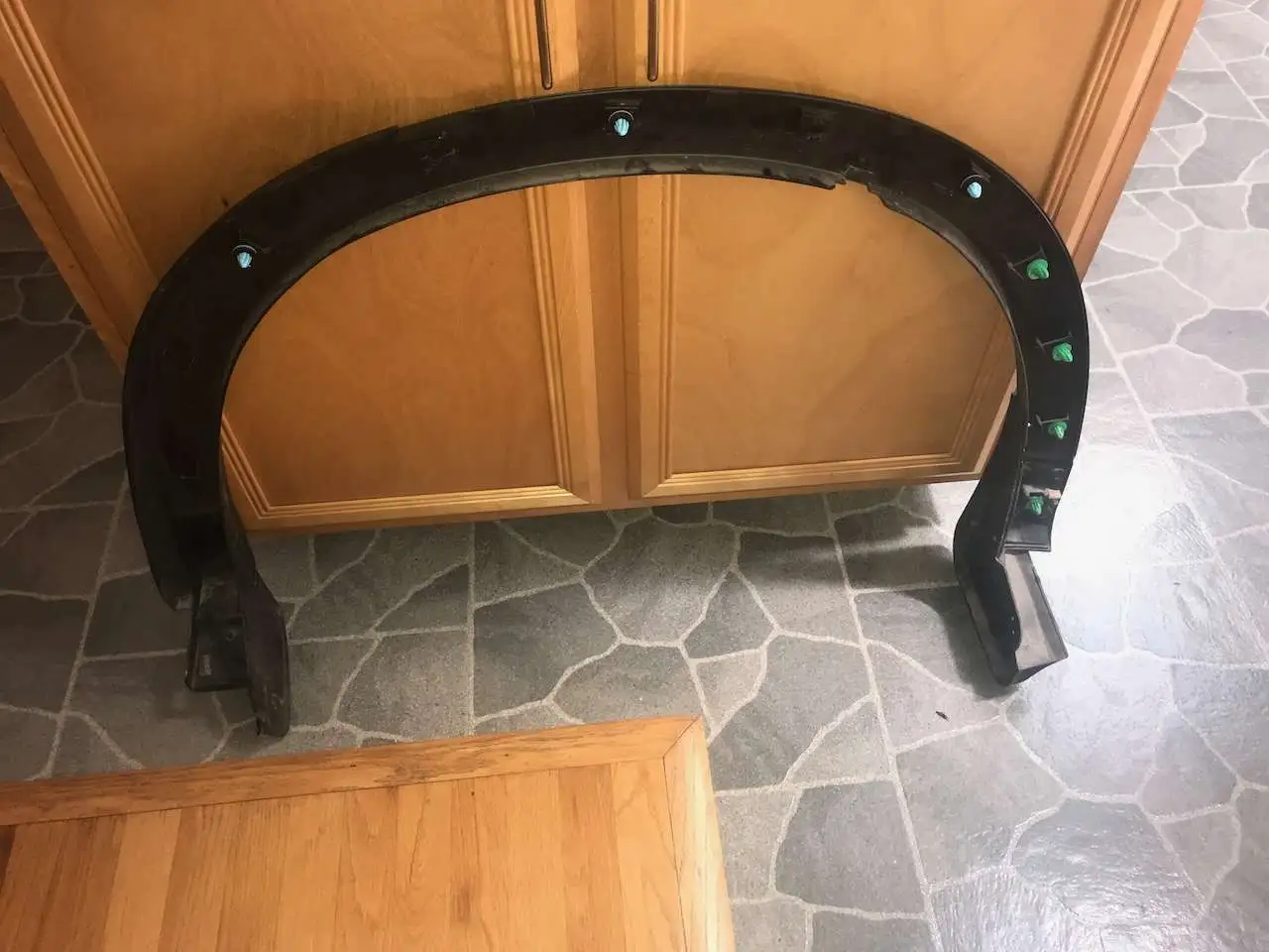 Three of the mounts on the front of the arch that hold the clips that hold the arch to the body panel were sheared off, taking the clips with them. I'm pretty sure I'll need to replace the arch itself, if only to get one that has the mounts attached so I can put clips in.