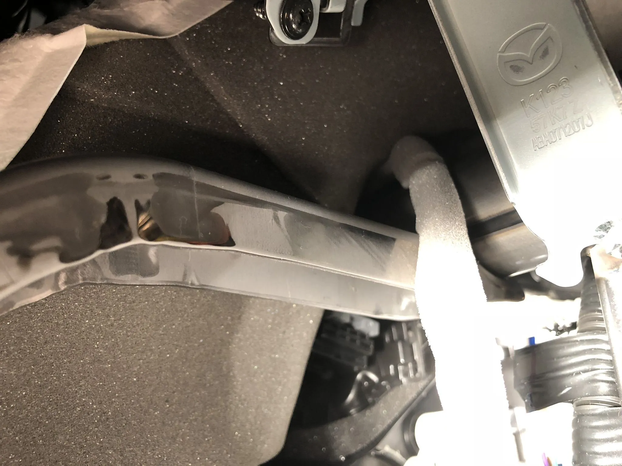 - My biggest fear did surface but, fortunately, I got through it. I was leery of getting all the parts put back properly. All the trims that had clips were removed and reassembled easily...just like Lego. BUT, I had trouble with the CMU/display because the left side didnt come off cleanly and, sure enough, I had a hell of a time putting it back. In between the 10mm bolt and the screw below it is a cylindrical plastic guide that is supposed to go in a hole. That guide wouldnt go in cleanly because there is a part in the way (part of the instrument cluster trim). I finally figured that I have to insert it at an angle but that took quite some time and several tries. All in all, It took me 2.5 hours to perform the AUX Hub installation (slow and steady :-))..and thats without the silly wrapping of the USB cables with foam tape which took forever (Mazda should have prepped the cables IMO).