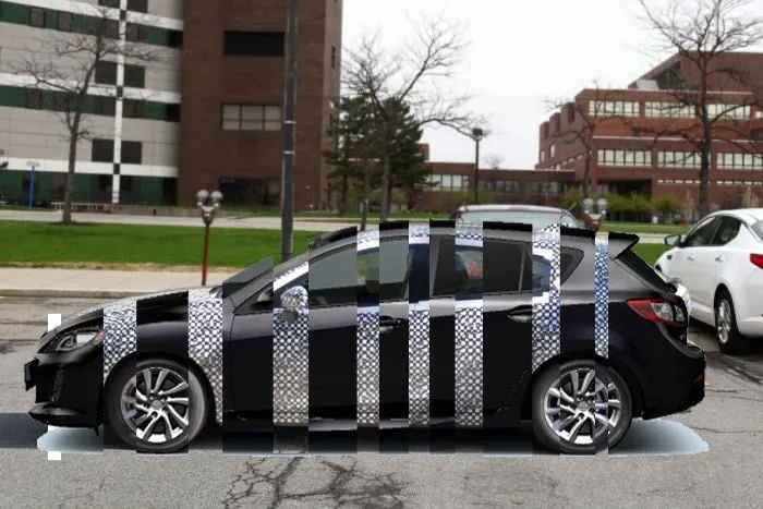 I'm no wiz at photoshop but here's an overlay with the current model and one with sections cutout to show the other car behind it.