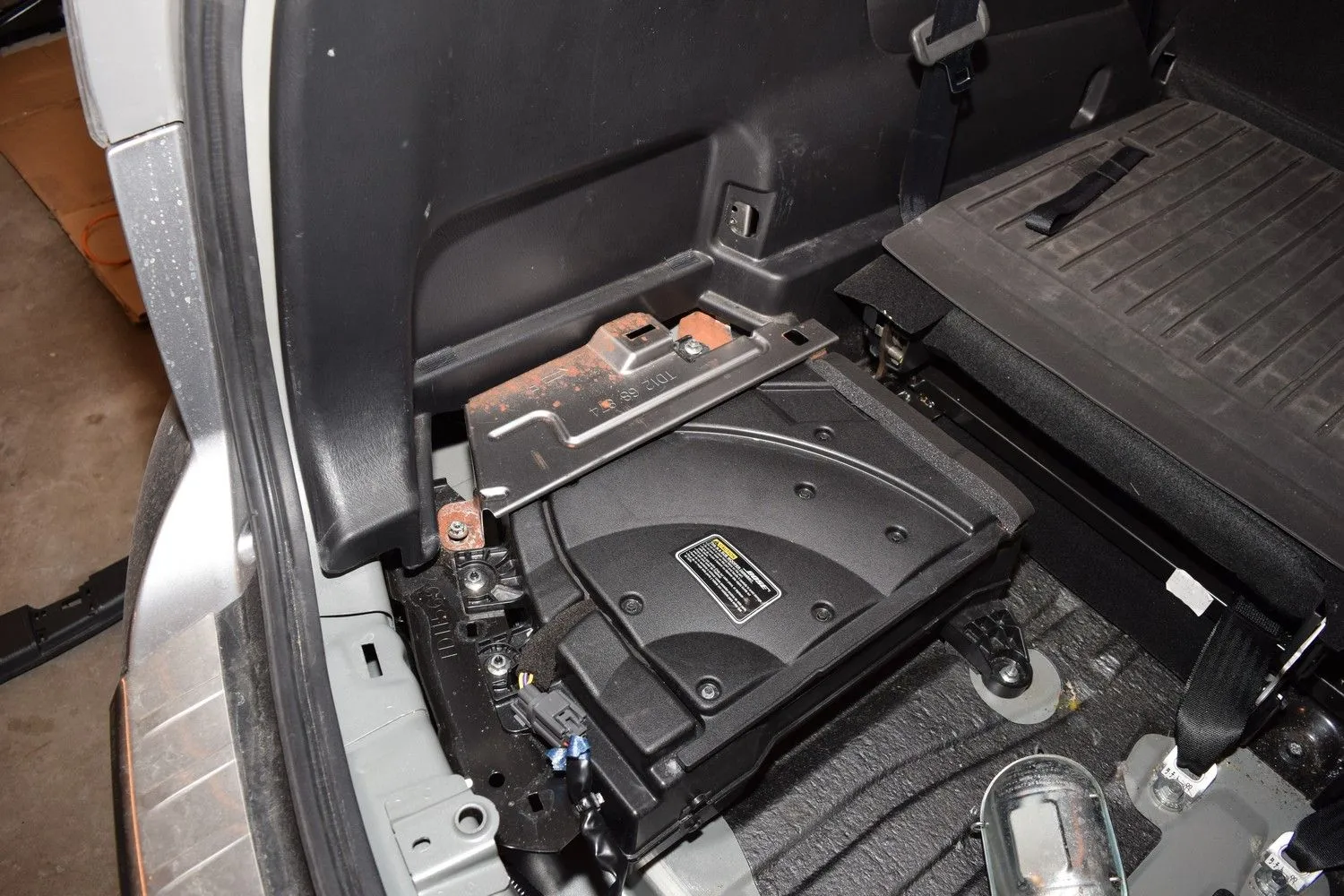 You are going to want to remove the silver metal bracket over the sub-woofer. These are still 10mm screws.