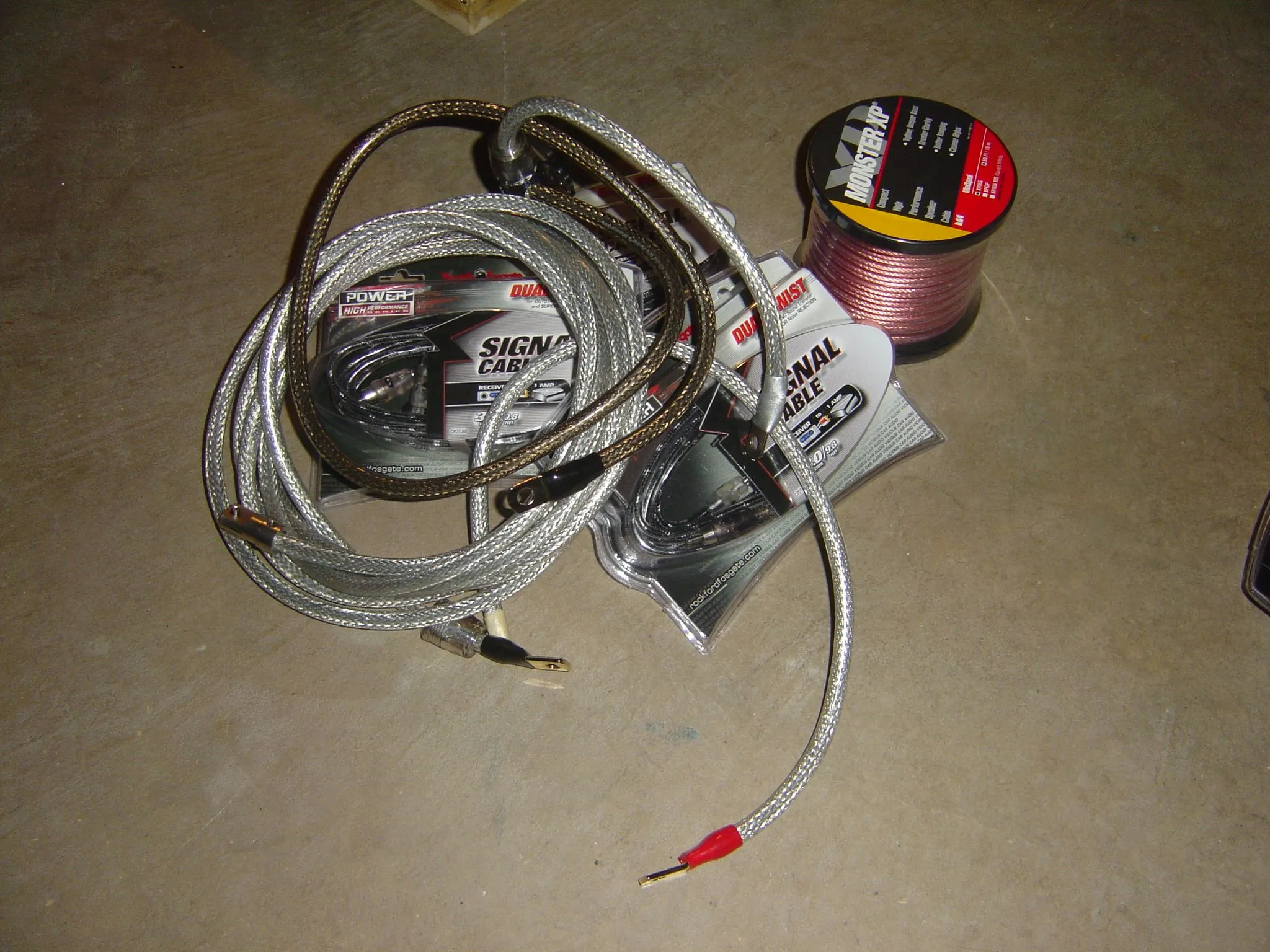 Pictures 4 of the new wiring to go in the car (new RCA cables, new 4 gage wire, new ground wiring, and new speaker wiring)