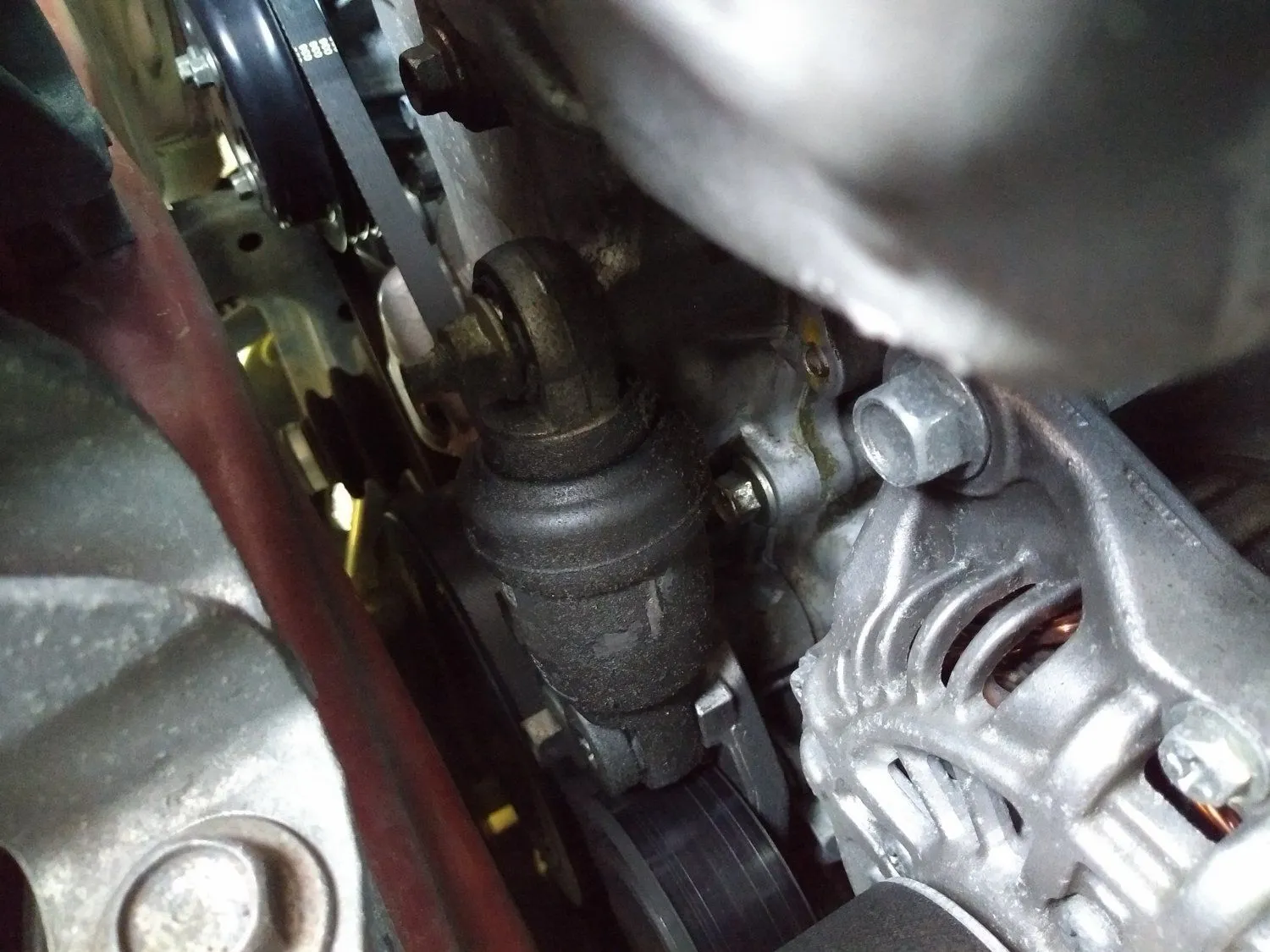 Granted, they're not the best pics, but I was able to get these during my rush this morning. Bonus shot of the tensioner for good measure, a little dirty (you can see my finger swipe) but doesn't appear to be leaking like so many others. For those curious, car has just under 72k miles on it. What are your thoughts?