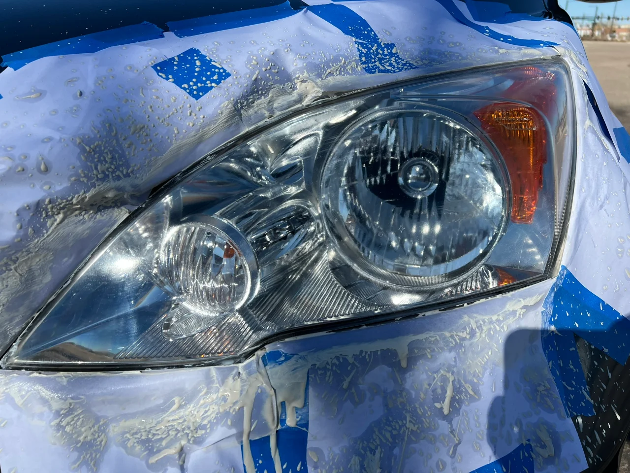 6. Apply a UV headlight coating. Clean and dry the headlight surface and re-apply painters tape to protect paint. Then spray a thin film of UV coating across the headlight a few times with wide even passes so it doesn't build up. Let it dry for a few minutes, then remove painters tape.