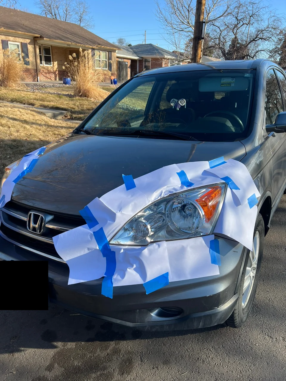 3. Use painters tape (which is easy to remove) and optionally some sort of simple cover to keep the polish off the paint. I used copier paper as shown in the CR-V photos.