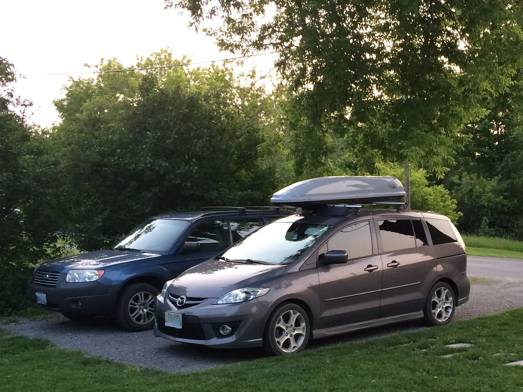 I've also got the Yakima Loadwarrior roof basket on top of the 3 and the 18" extension in the garage I'll be mounting the full shebang on the 5. I'm not a fan of the stock roof rack mounting point locations, so I'll be experimenting on different mounting points to better position the basket. I'm bummed there are no roof rail options out there for this generation of the Mazda5 or else I'd be going that route!