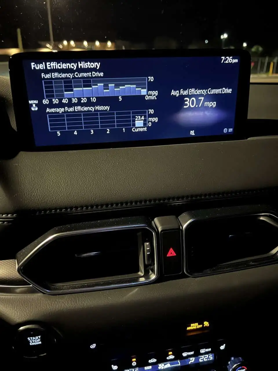 2021 and newer Mazda added more to that. One gets another screen with more useful details at engine off. It shows car avg mpg, avg mpg for the trip, the trip miles and the trip total time.