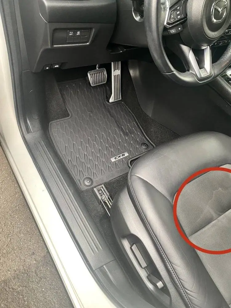 . When they detailed it, they didn't do a good job. Any ideas about cleaning the black interior? Also got what seems to be like a water stain on the suede. Any suggestions on how to clean and maintain the seats? Thanks fellas.
