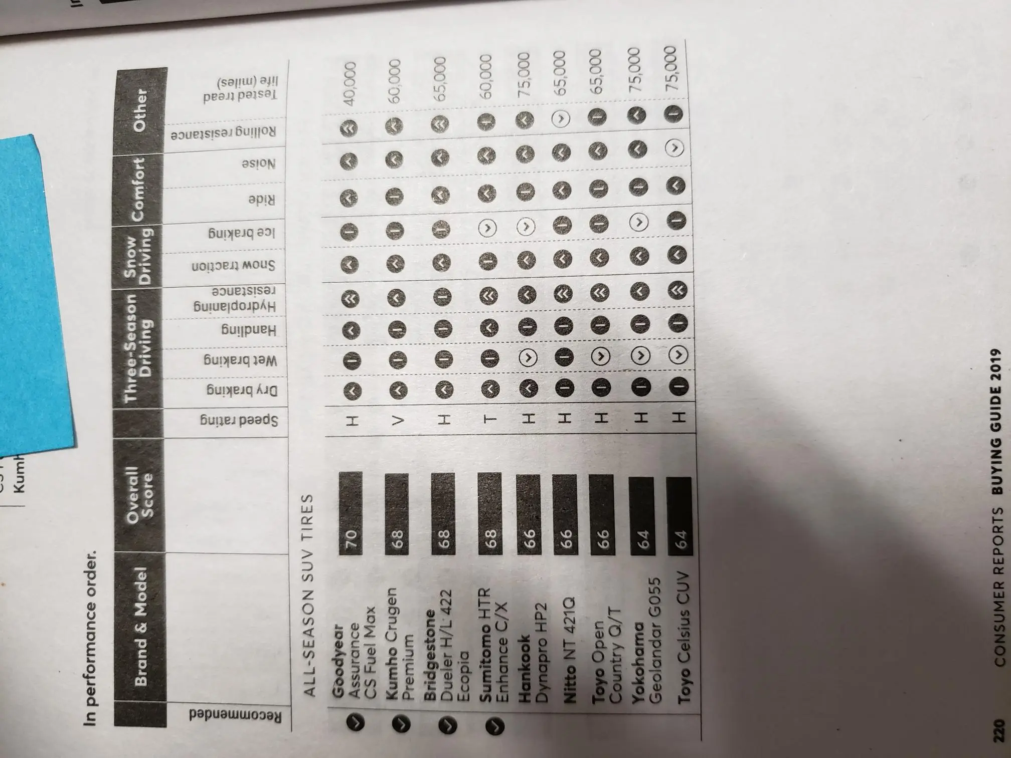 225/55R19 Tire Comparison Table for CX-5 GT - Many to Choose From