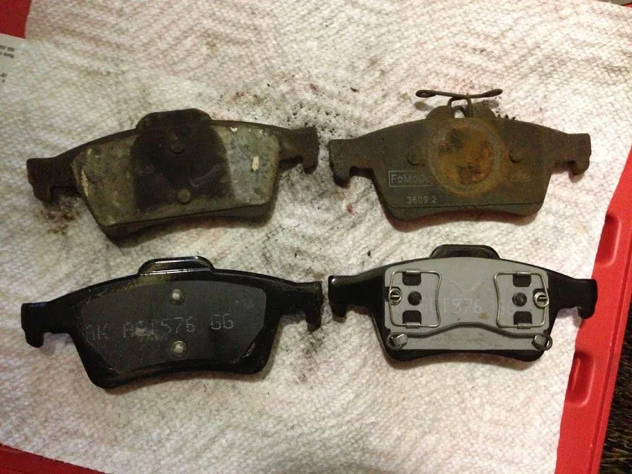 I have one question which seems to get no coverage (that I can find) and that is related to the little springs/clips on the back of the inside rear pad. The one that attaches the pad to the caliper piston. My ATE replacement pads did not come with any clips nor do many replacement pads that I have looked at. Perhaps the Mazda OEM dealer pads do but I find they wear too quickly (thoughts?) and I want to try other suppliers. I am assuming that I'll re-use the clip that are on the old pads now but I might find they have worn or rusted and may not be re-useable. If that is the case, where do I find replacements? Many online parts sites don't seem to describe that part. See the photo of my new pad, the lower one is the inside pad. I also have the shop manual but that part is not shown there either. The only reference is a somewhat vague diagram showing that the pad attaches to the piston - but no part number.