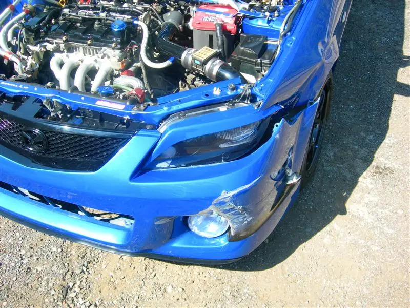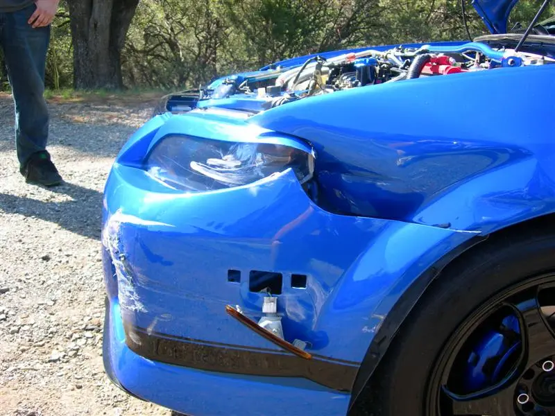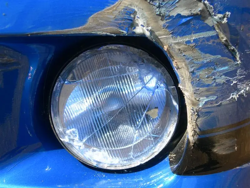 So far it looks like I took out my left headlight, left fog, left fender, left fender support, radiator support, lower grille, and the front bumper.