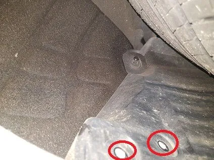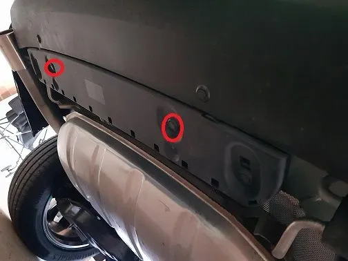 3. Drop under the bumper and with a prying tool remove 2 x push pins that hold the underside of the bumper to the vehicle undercarriage.