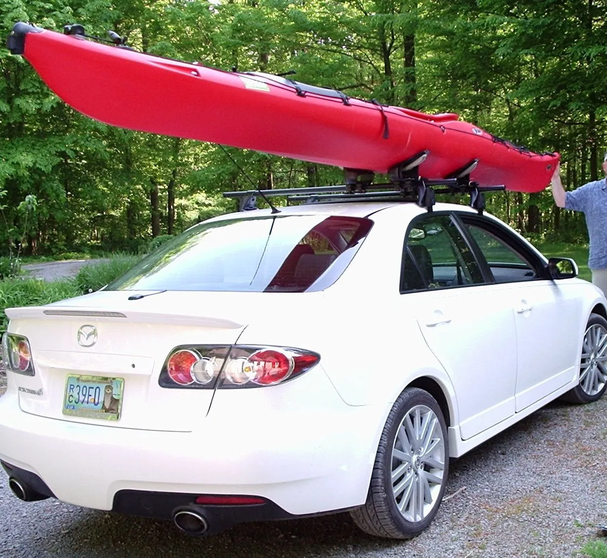 I bought Yakima racks to haul kayaks, skis, etc., and they work well. The advantage of Yakima over Thule is that you can spread the bars a bit more and not worry about the angle changing. I was worried about it looking awful, but the black racks actually look OK on a white car. It's a little more obvious with the big red kayak on top . . .