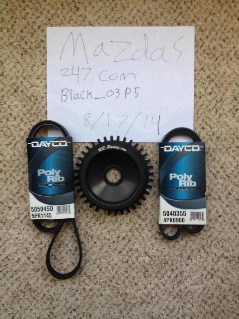 This pulley also comes with 2 Brand new Dayco belts part #'s are 5050450, and 5040355 these belts are for AC and RR Racing under drive pulley.