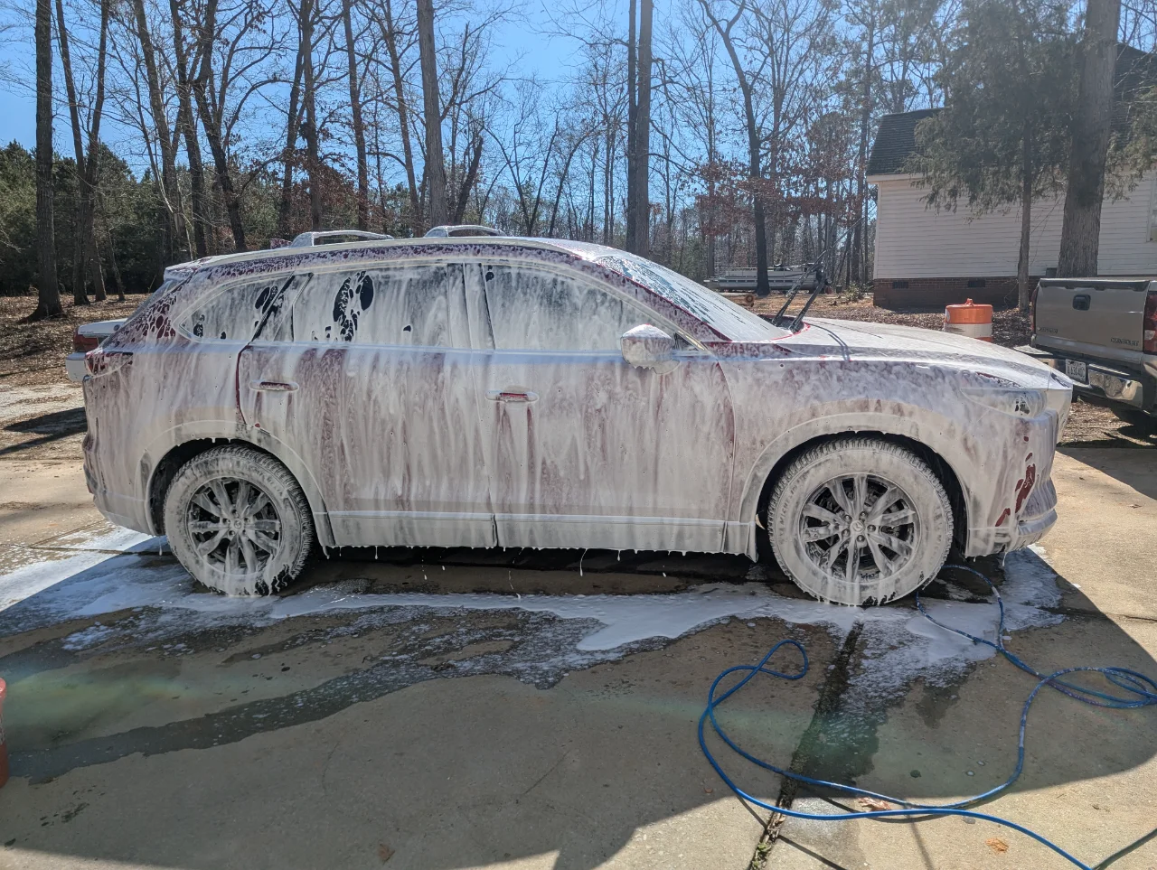 The other option is the Carpro Descale soap I have in the foam cannon. Then brush and rinse.
