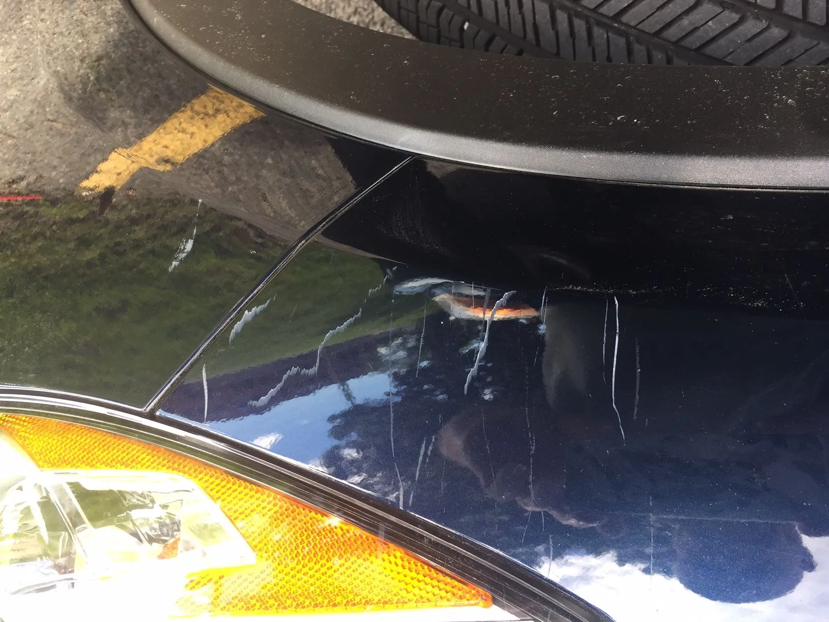If you run your fingernail against the scratch, can you feel it? If so it is past at least one layer of coating. Could be deeper but hard to know for sure with out seeing it. You have 3 layers of coat before the metal, Clear, color, primer, then the metal. Mazda has galvanized the sheet metal so you have a tiny bit of protection before rust forms if it's down to metal but not thru the galvanized layer. If you can't feel it with your finger nail get some decent polishing compound, Meguiars 105 or Ultimate compound work pretty good. A dual Action polisher or rotary polisher will make quick work of it, just be careful with a rotary style polisher as you can burn the paint and induce holograms pretty easily. If you don't have any of those tools you can try one of those drill attachments that have different foam pads for polishing.
