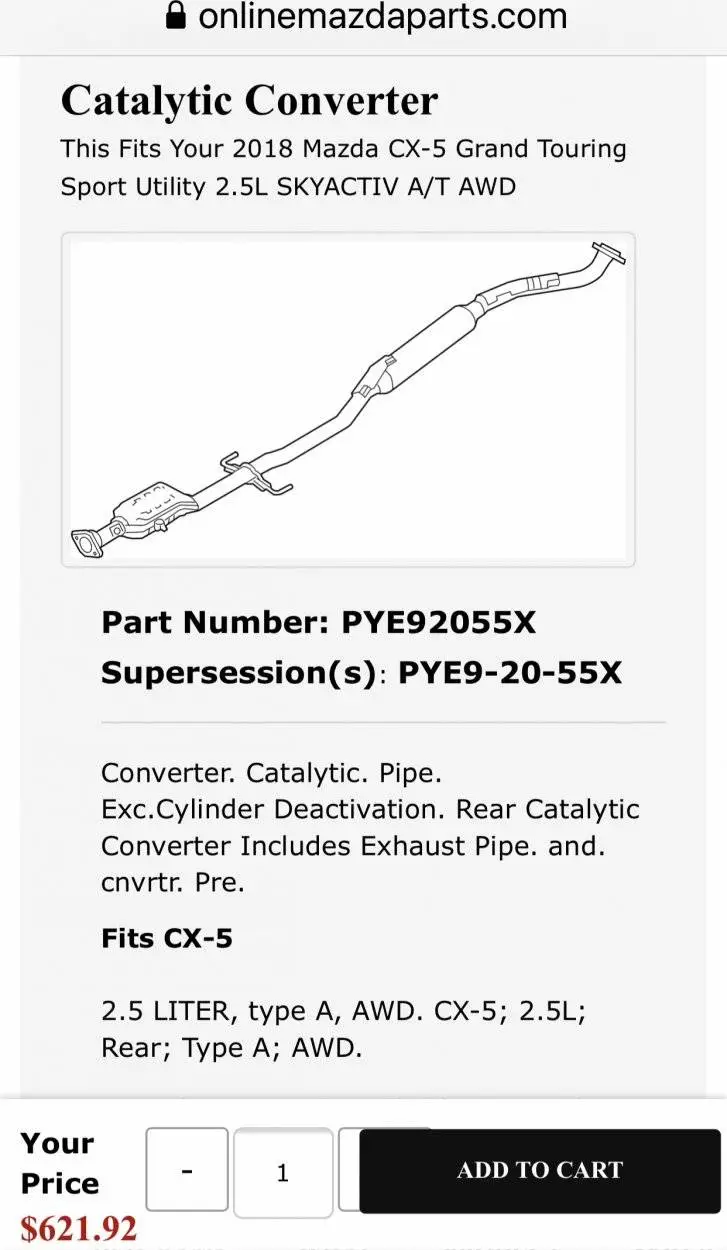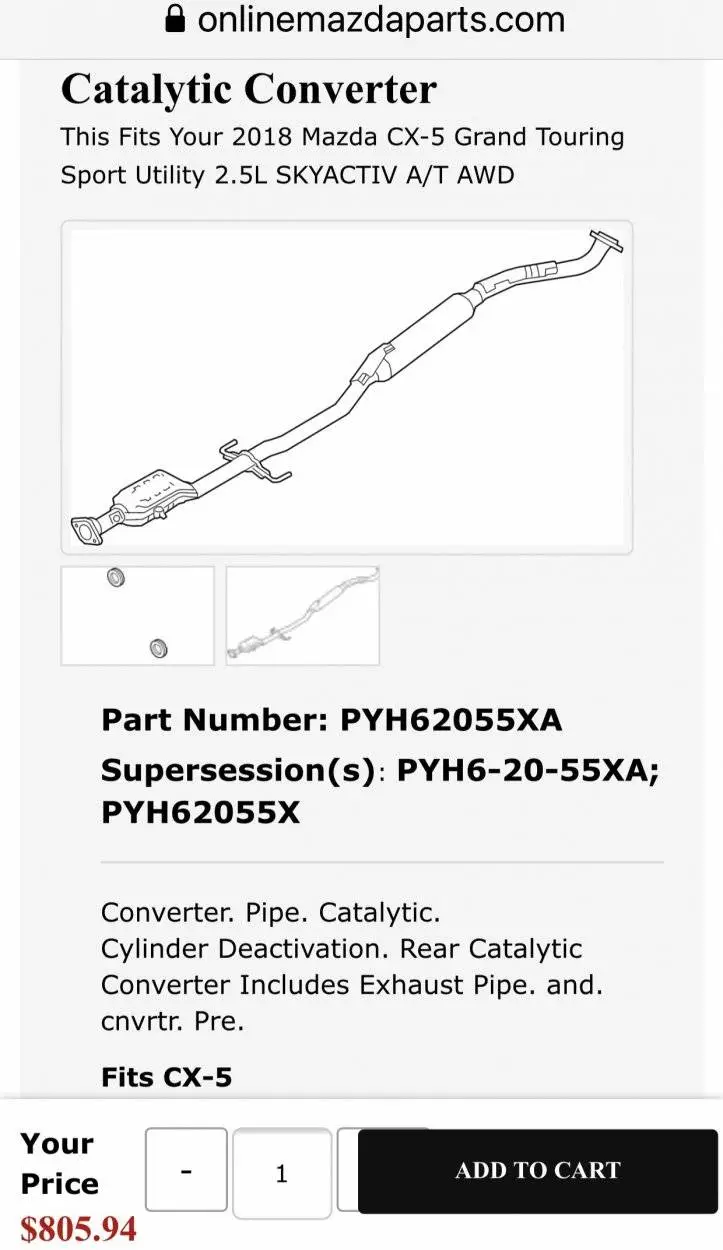 Someone at Mazda knows what this part does or it wouldn’t be on the car. It shouldn’t be so hard to get and answer and find a more reasonable solution instead of charging 1k by replacing the cat. Seeing things like this make me question if I’m willing to keep my Cx-5s after warranty.