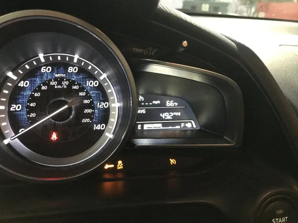 On the way back yesterday I turned the TCS off the Yaris definitely behaves just like our CX-5, the car feels peppier which makes me believe the gas mileage should be improved. Wife drove the first part and I could hear the engine was roaring a lot in the mountain section on I-5 north of the LA. We stopped at the first rest area and I started to drive. I saw the AVG MPG showed only 36 which is worse than I expected. I immediately noticed the “SPROT” amber light was on in dash, and that’s why the engine revved very high in 4th or 5th gear even at 70+ mph! I turned the Sport mode and TCS off、reset the AVG MPG、and drove the next 200 miles. Even though there was a 40 minutes of stop-and-go traffic on I-5 due to a car accident, but when we stopped at the rest area and I checked the AVG MPG, I was shocked to see: