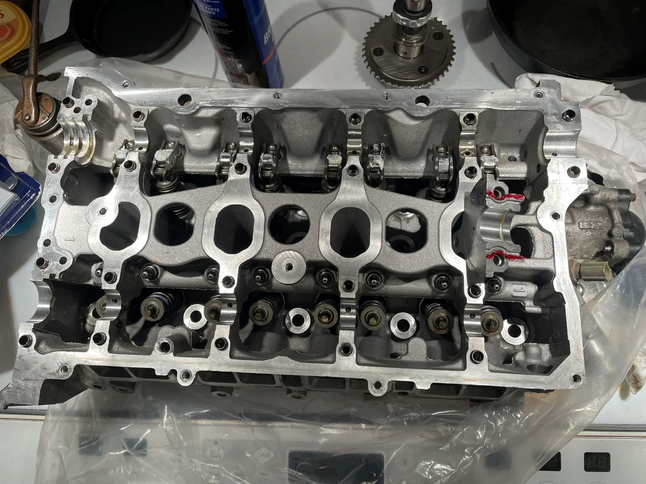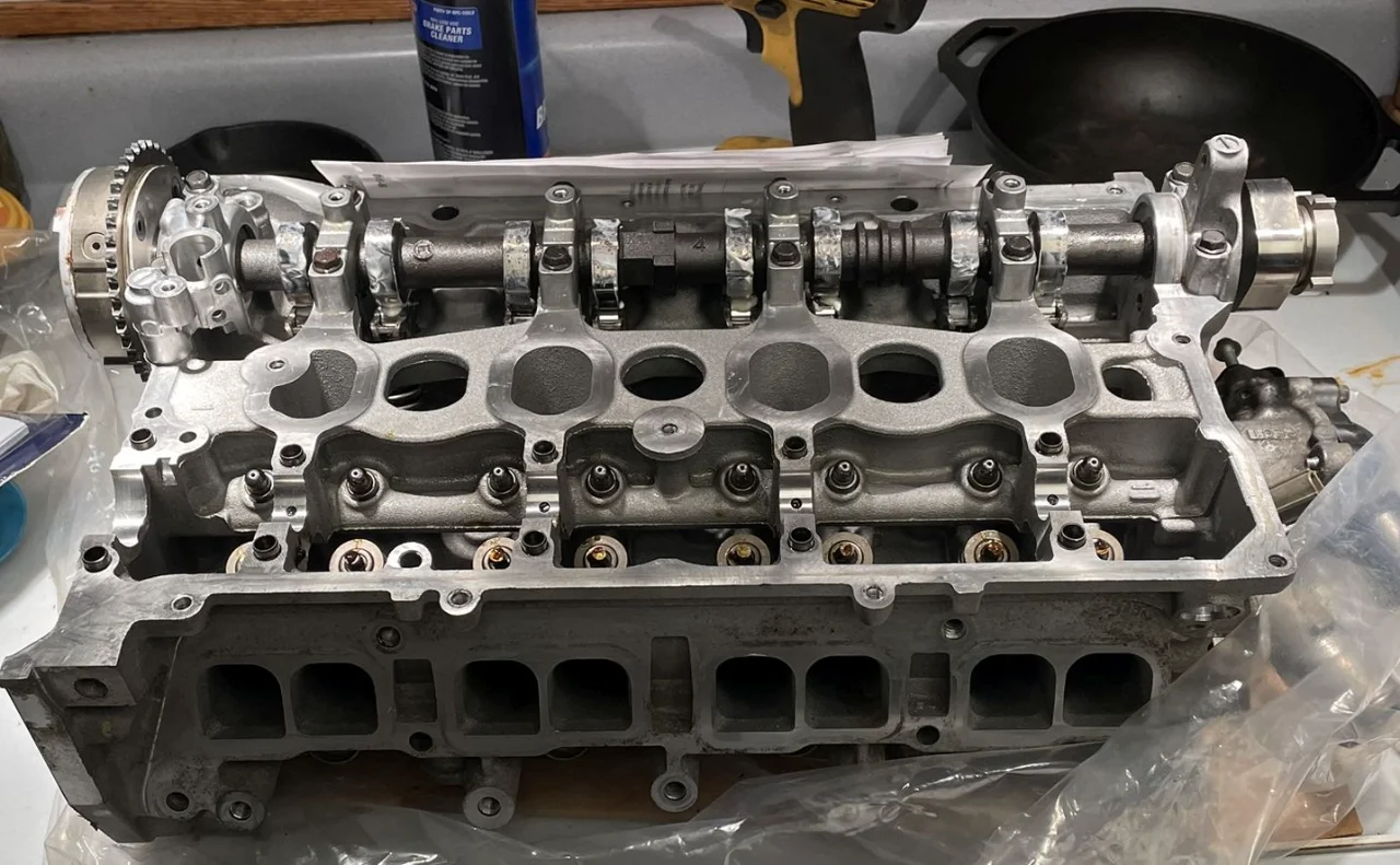 Oh, and another note, when you are re-installing the HLA lifters, the manual shows that you need to insert them in an oil bath to remove trapped air. I don't think the instructions are super clear. Here's how I would word what you need to do: Submerge the HLA in the oil bath vertically, resting the bottom of the HLA on the bottom of the container. With one hand, press down on the top of the HLA to depress (or compress) the plunger insert, With the other hand, lightly press in with your 1mm metal rod (I carefully used an upside-down drill bit) to depress the metal check-ball inside. You will NOT feel much movement. Try to do these two actions together until the plunger top feels bottomed out. Then first remove the 1mm metal rod to allow the check ball to return to its normal state, and then allow the plunger to rise. Remove the HLA from the oil bath and check that you can no-longer depress the plunger top. If you can a bit, repeat the procedure until you can't. If you are unable to stop the plunger from being able to be compressed outside of the bath, you've got a bad HLA, or the metal check ball might be having an issue seating itself correctly inside the HLA. Replace it.
