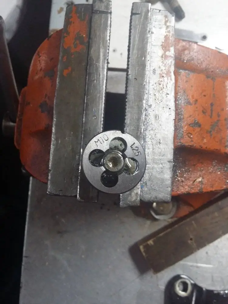 The adjuster nut/ eyelet is M10 x 1.25 (Fine thread) , the long bolt is M8 x 1.25 (Course thread)