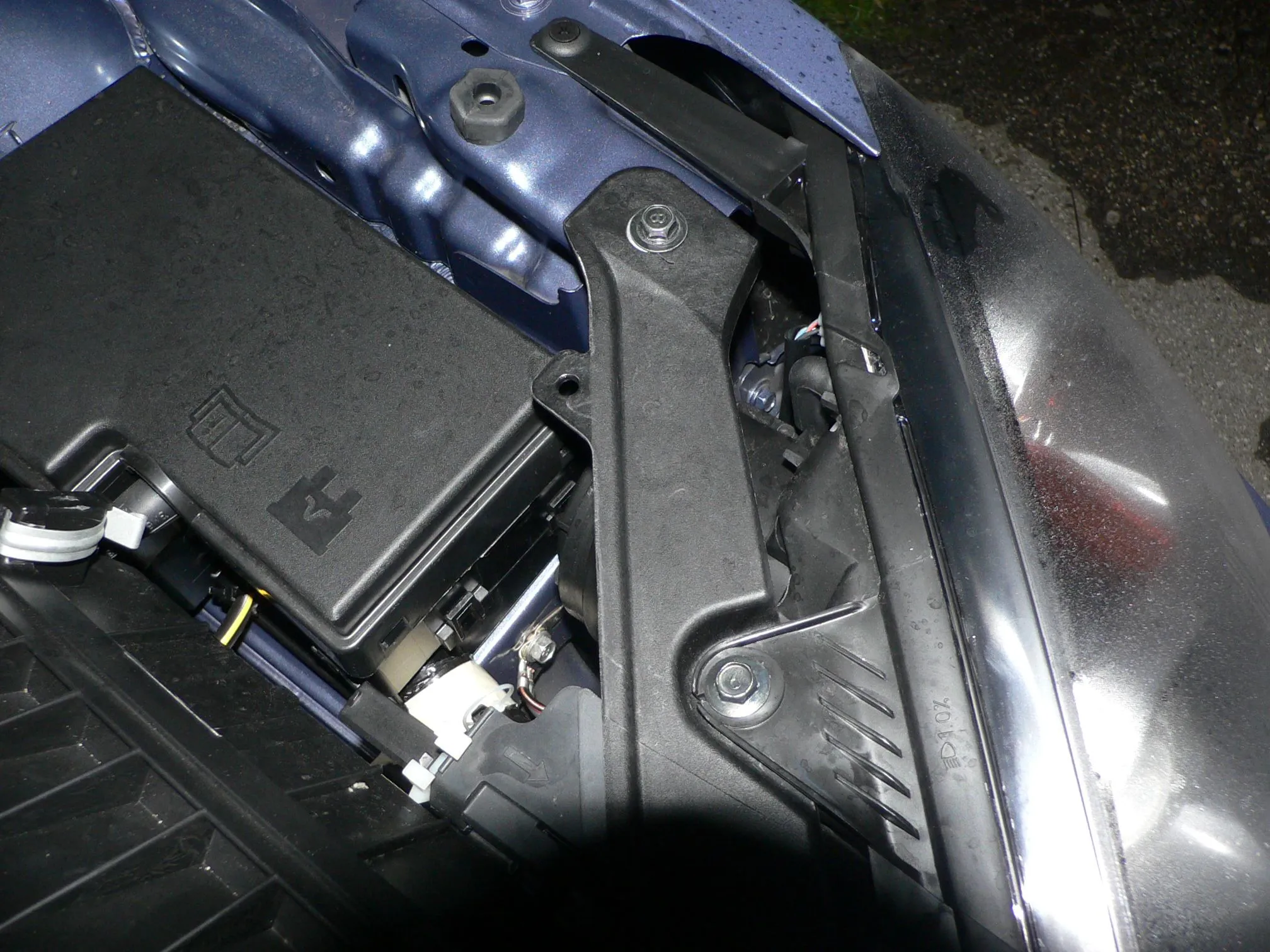 I got my front signal bulbs replaced in my MS3 with HIDs. This is a real exercise in dexterity and patience. You can see the sockets but only barely touch them with your fingers. I managed to release the sockets with a long plastic tool. Then fished the loose socket with a "grabber on a stick" tool to get it within reach. After replacing the bulbs with Sylvania SilverStar 1157AST bulbs, I manouvered the bulbs and sockets back into place with the grabber and turned them in with the plastic tool. It is a nice improvement. They look blue when off, amber when on. I did manage to drop the bulb on the right side and it went down a black hole, but I retrieved it when working on the fog lights (more on that later).
