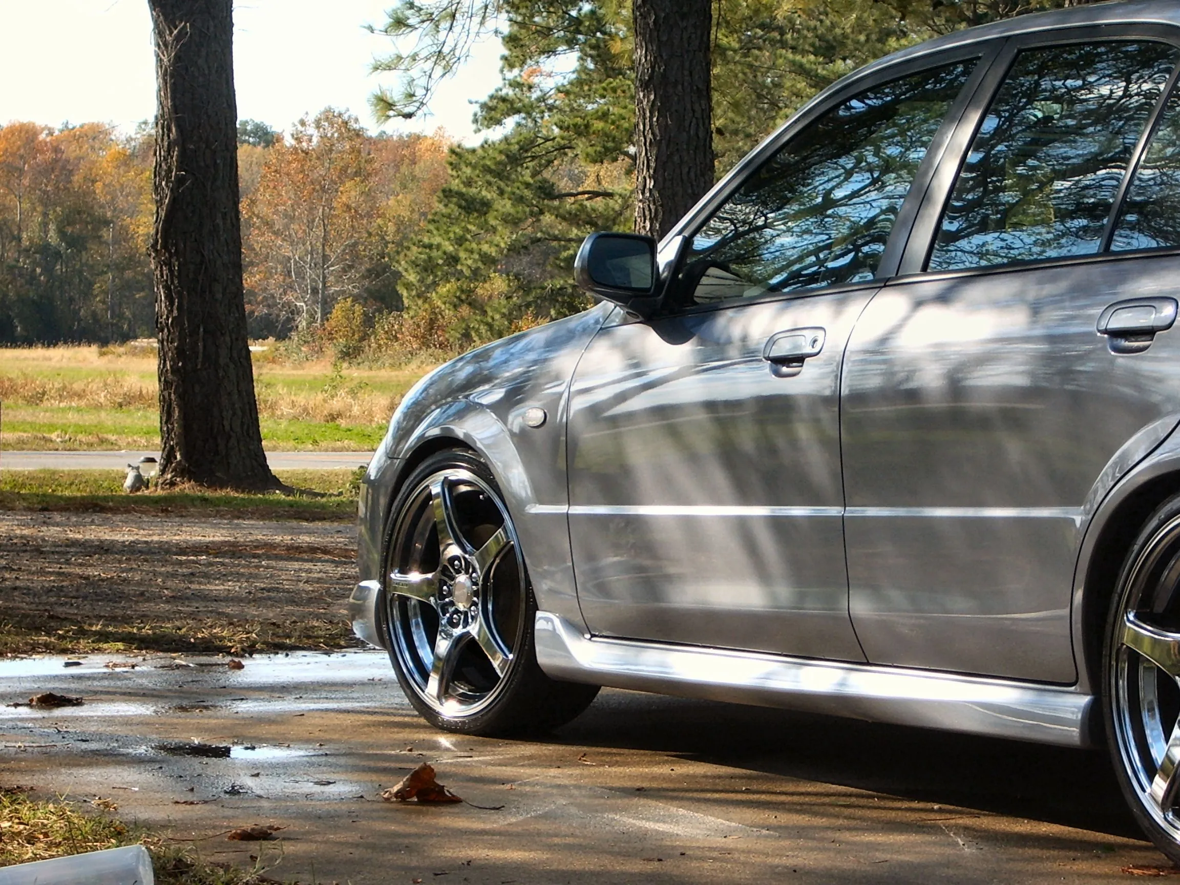 I consider my car to be on the edge of slammed but I got kicked out of the slammed thread because my jack points are 4" off the ground. It's hard to get a 3 low on stock equivalent tire sizes. If I went with smaller sidewalls I could easily pull another 1.5" but I would want a skid plate made before I try that. I think the best way to gauge lowness on different model cars would be to measure from the center cap to the edge of your fender. If I can pull another 1/4" in the front and rear I will be tucking some tire tread.