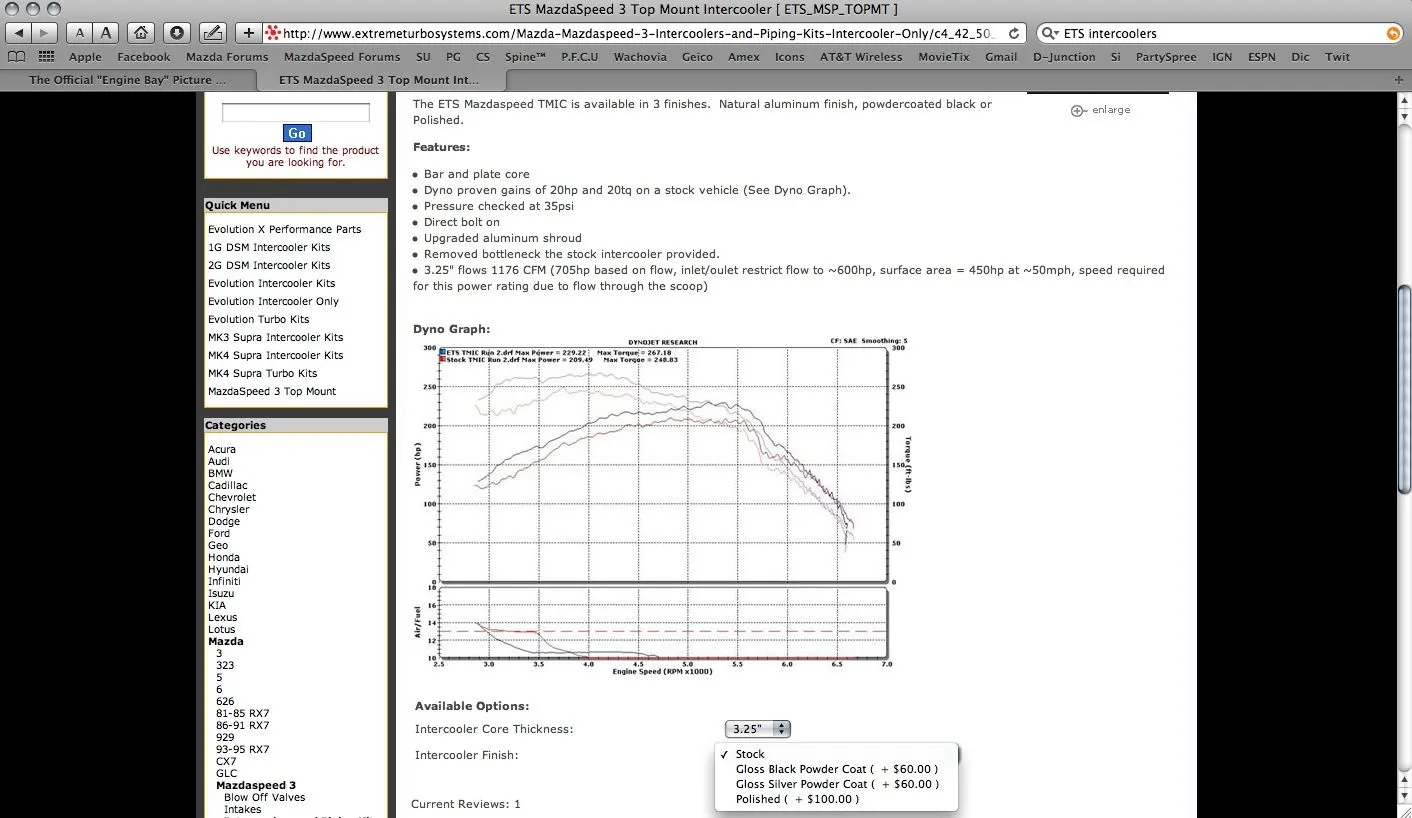 When I was talking to them they said to Anodize the intercooler it would cost $80. Their color options are Black, Blue, Red, and Gold.