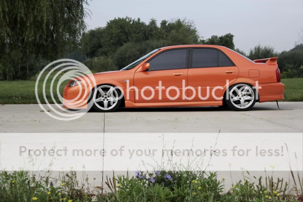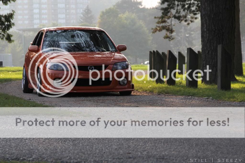 Car is a Spicy Orange 2003 Mazdaspeed Protege.