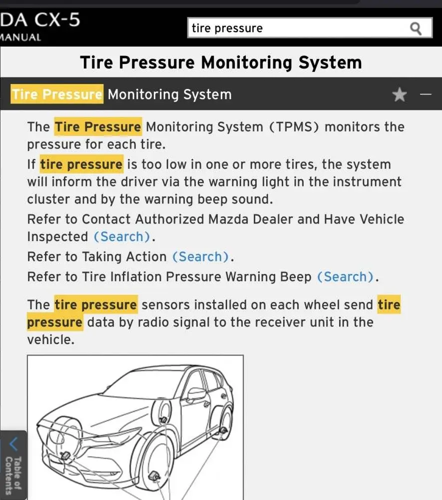 But you have to realize that current factory TPMS installed on 2021 CX-5 in the US still doesn’t offer the information you desired. The system doesn’t display ANY tire pressure and temperature information from each tire on infotainment screen. Only a TPMS warning light will be lit in dash indicating one or more road tires are having low tire pressure.