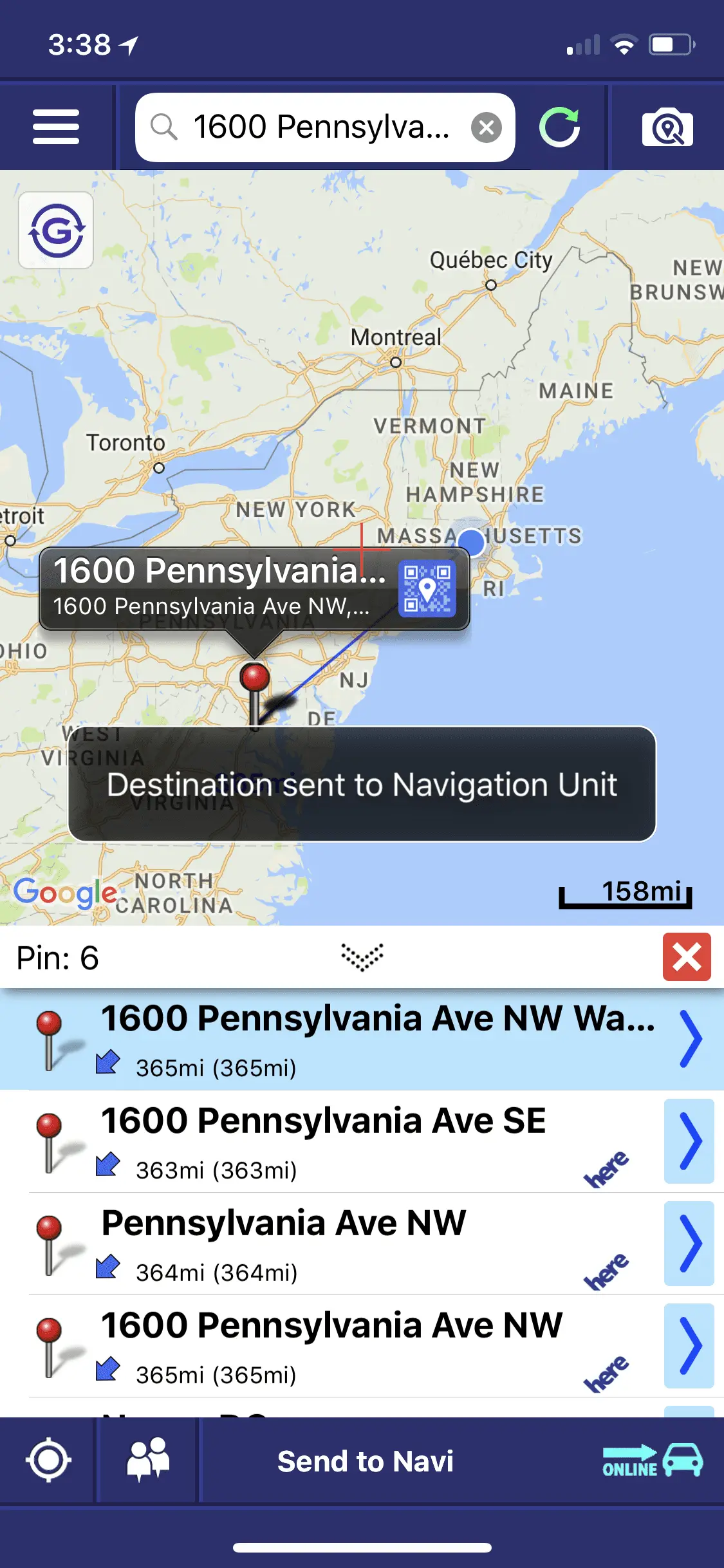 So I downloaded the App to my iPhone. While it's not technically a navagation app, it reportedly sends navigation destination information to your cars Nav system. I loaded the App and it reports "Online" which means a connection is made between my phone and the car nav system over bluetooth. I pick my destination address which pulls from Google Maps, Apple Maps and Select "Send to Navigation Unit". The system reports that is HAS sent to the NAV unit, but nothing changes on my NAV screen.