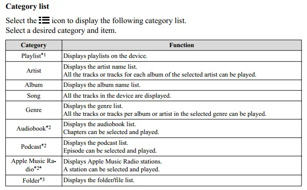 "Folder" is the only option I can select and when I select it, all song titles are listed. All other Categories are greyed out. I'm using firmware version 70.00.367 and have a 64GB stick formatted as FAT32. I've seen conflicting things about compatibility above 32GB-could this be what's causing my issue? It's not like songs don't show up, just can't figure out how to get and artist folders to show up.