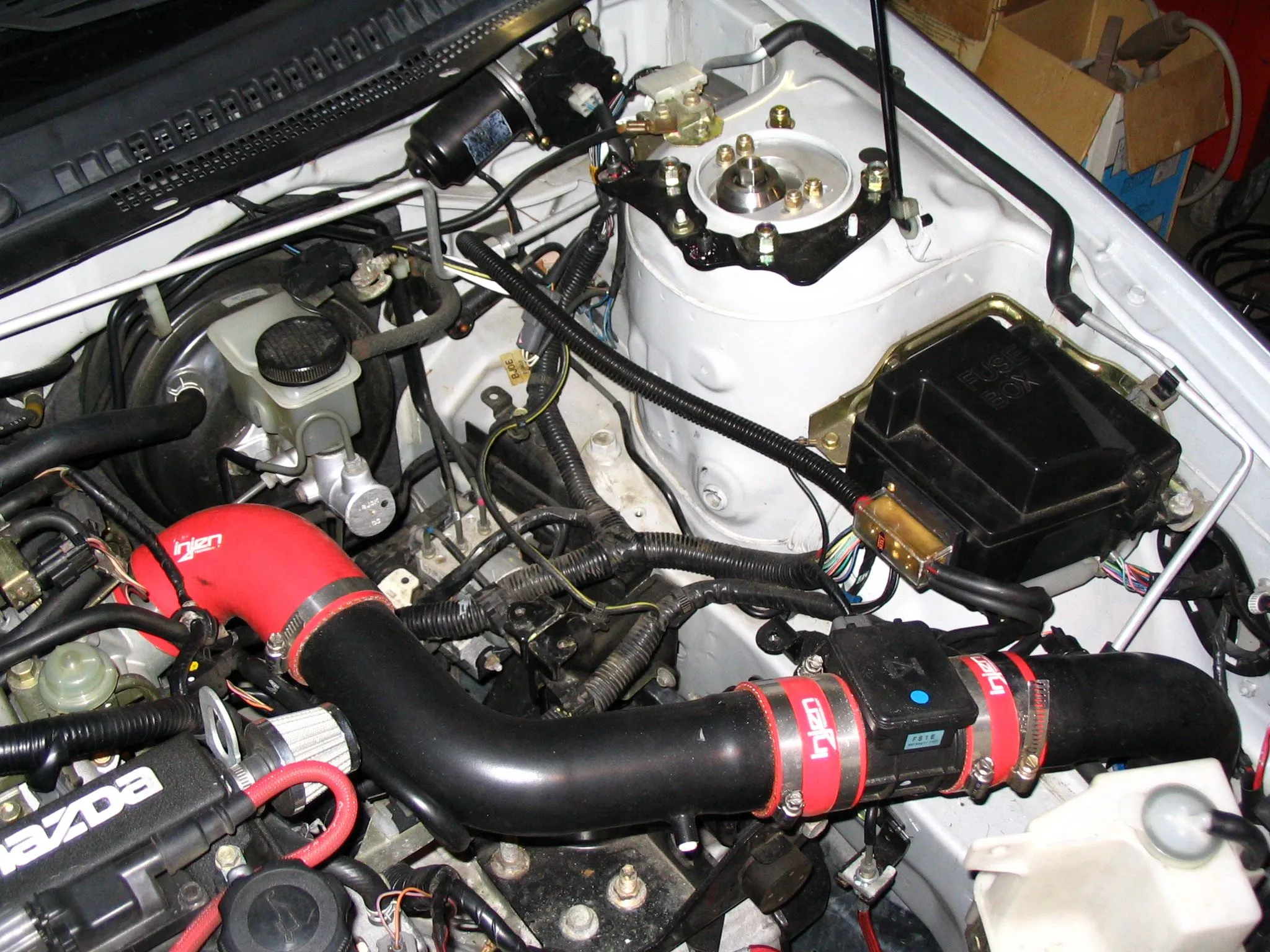 It's no problem in the Protege either. The condenser is in front of the radiator. Just unbolt it along with the collector on the drivers side and the compressor attached to the motor. You will need special fuel/AC disconnect tools for the two lines going into the firewall under the cruise control, but they are pretty cheap. Saves you 22 lbs off the front of the car. I made a thread somewhere that had the length for the belt you will need to keep power to the powersteering. You'll need to search for it. I think it is under "A/C removal replacement belt" or something like that.