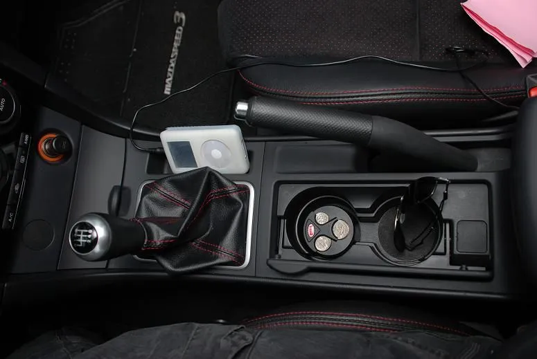 My Blackberry fits nicely in the groove to the right of the shifter. The rubber skin keeps it from moving around.