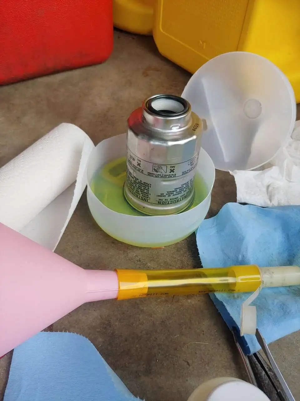 The fuel filter on the diesel is a pretty nice package for $36. All in one unit with the filter element and a water/sediment/fuel separator that has a drain valve and nipple on the bottom of it. Pretty slick setup really.
