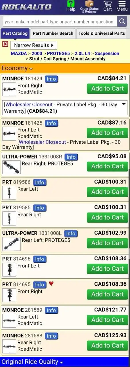 Anybody know what happened to the KYB QuickStruts (I think that's what they were called) on RockAuto? I can only find the base struts without springs or mounts. I don't mind putting everything together myself if I have to though. But if I'm having to buy springs anyways, I'd love to drop the car a tad bit. Man, if I only I could get my hands on some MSP springs...that would be sweet.