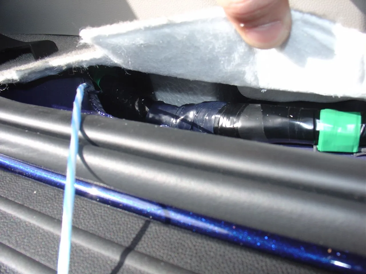 I will start out by saying you need to remove all the interior rocker trim pieces on the passenger side first. I pulled the cable from the front to the back of the car and left the slack in the hatch, in hind sight, it might have been best to do it in reverse and leave the slack under the dash. I initially thought that the run into the hatch would be very difficult so I left it for last just in case.