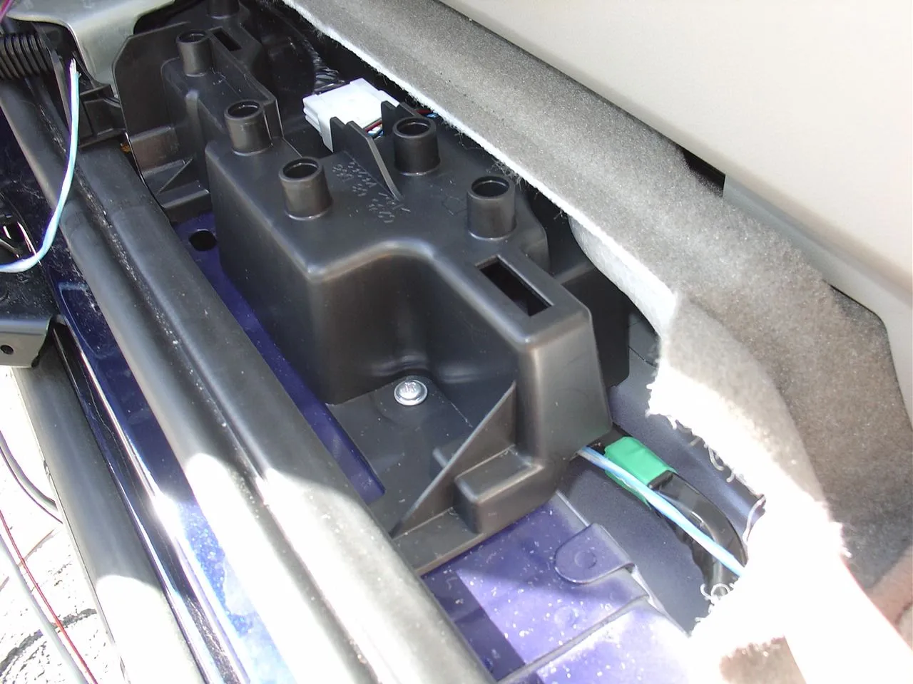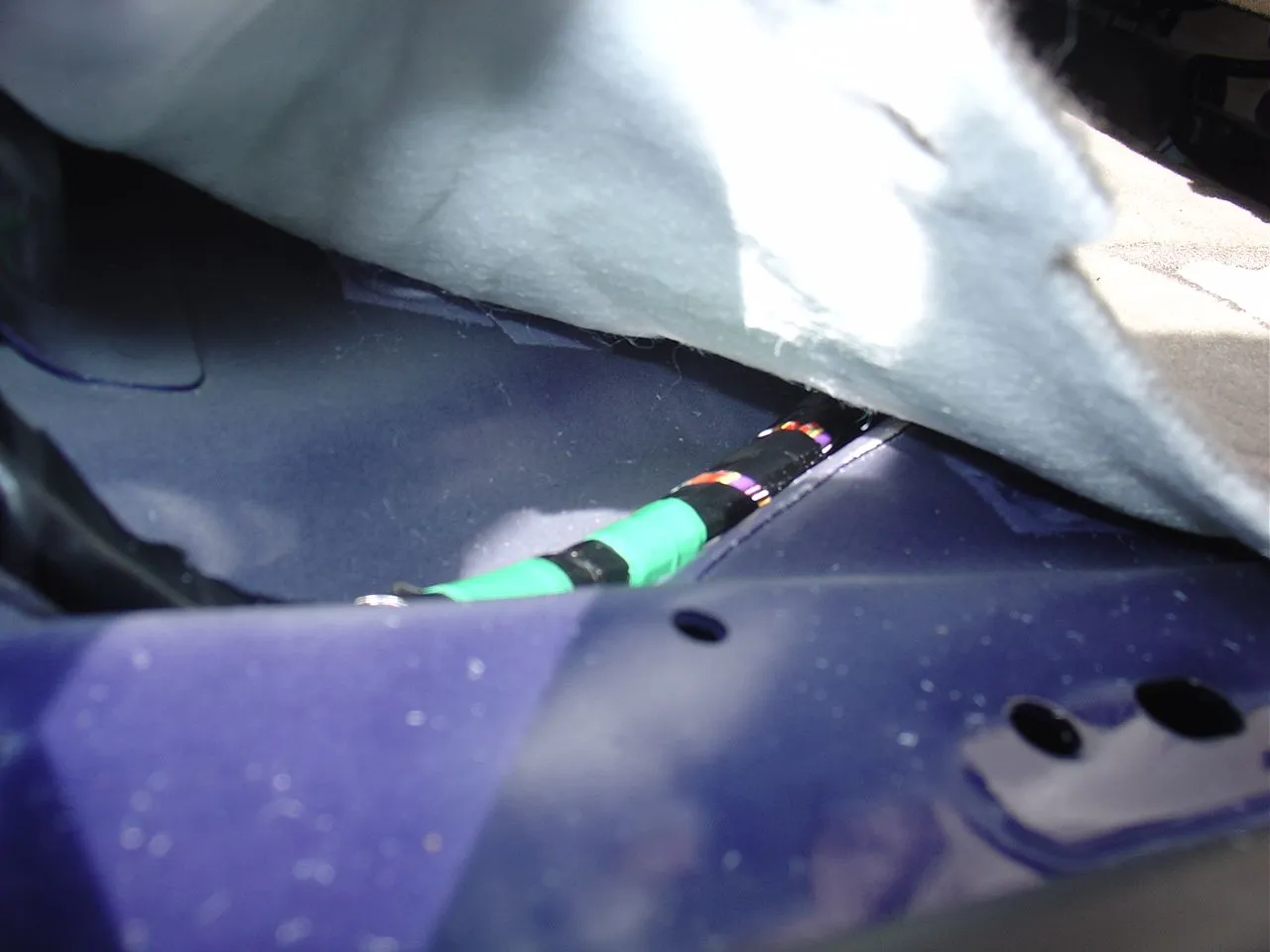 This shot shows the location and the connections for the mirror to function. I left all the connections I had to make here in the passenger footwell for easy access.
