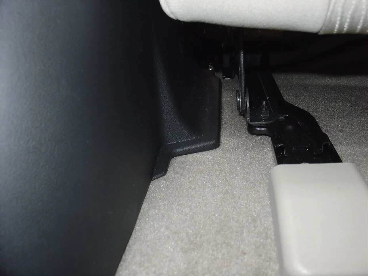 To remove the kick panel, you must first take off the door sill. This just pulls straight up fairly easily. Then you will remove the expanding clip by your feet by prying out the middle pin that locks it. The spackle knife works well for this. Then you just pull the plastic cover straight back towards the seat and it pops right off.