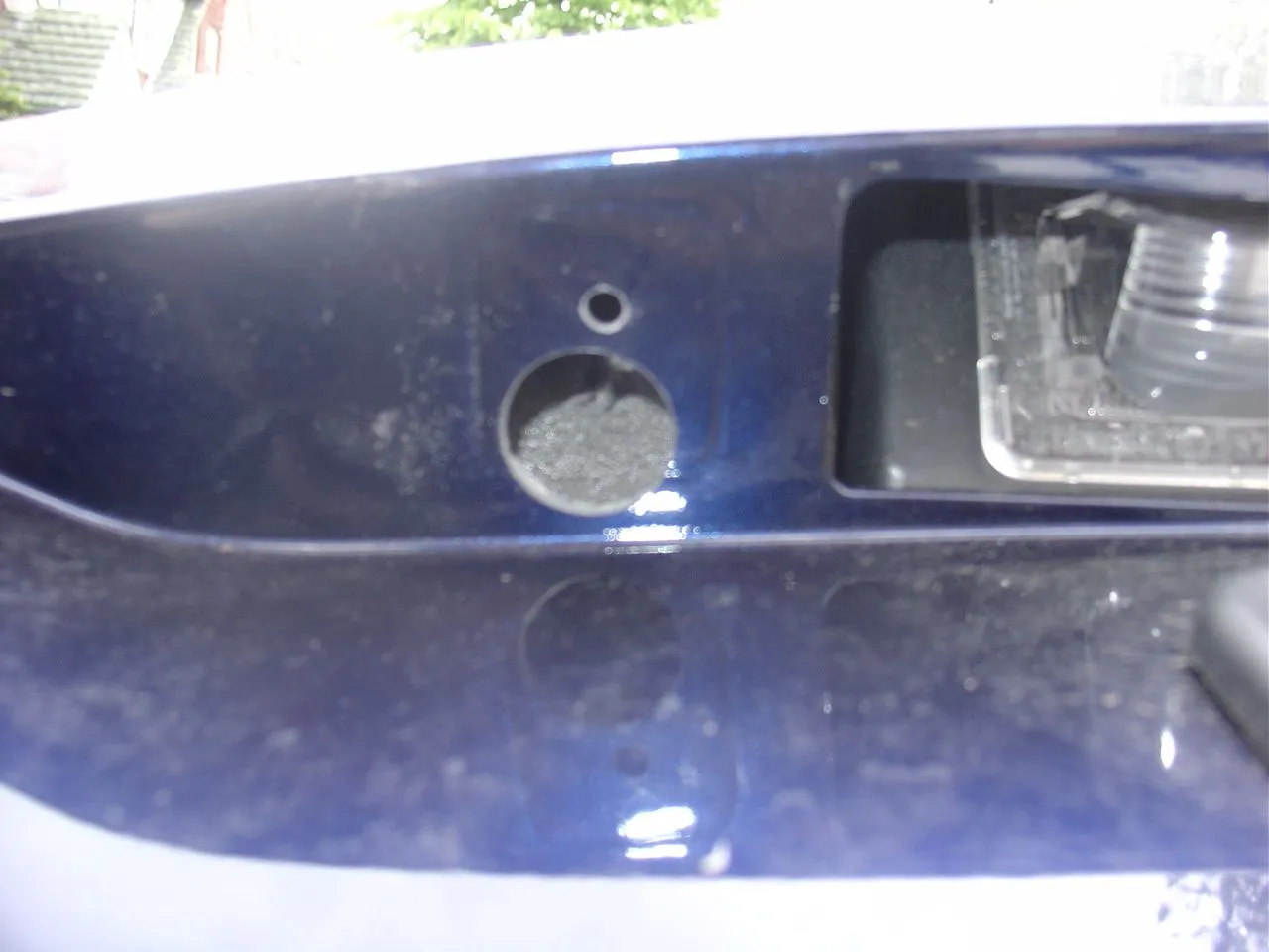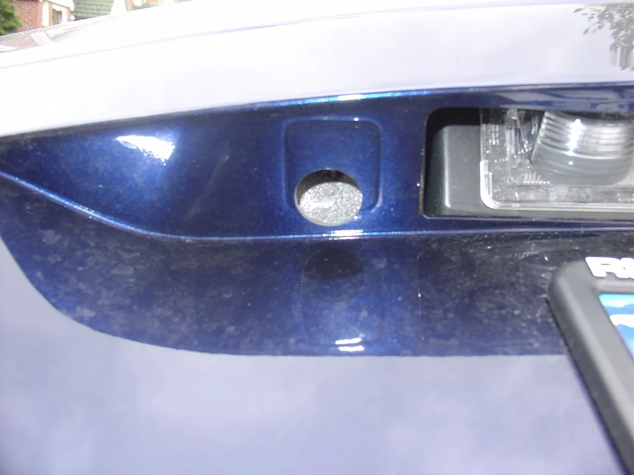Hole for the camera. Now the most nerve wracking part, drilling a hole in the body of the car. I will not be specific on any measurements here since there can be large deviations in the style and type of camera used. As you can see, under the lip where the release handle is, there is an area where the camera would be if we had it available in the US. I decided the factory knows whats good so I used this location. For my install, I made the hole with a 22mm or 7/8” hole saw, this would accommodate the harness from the camera. This is a circular bit with a center pilot bit. I wanted my camera to be as far back as possible so I made the hole accordingly. I put a towel over the hatch paint to avoid the drill scratching anything. It would be best to wash the area first too, so no dirt gets ground in, and use a clean towel too. Then I turned the torque down on the drill to its minimum since you are only going through plastic and you dont want it to catch and toss the drill or bend the bit, etc..... Remember, GO SLOW. Measure twice and drill once, there is no hurry to get through and you will get a cleaner cut by using less pressure. On the other side of where the hole will be the factory put a piece of self stick insulation over the hole. You can see this through the hole I made. In order to preserve it, push it out of the way carefully so you can stick it back on after to seal the cable. Now that you made the hole, time to mount the camera. My particular camera uses a threaded stud that goes into the camera housing and the other end uses a nut, bolt and lockwasher. In addition to this, there is a custom cut piece of body tape to secure the camera a second way. I measured for the stud hole and drilled that the appropriate size, your model may vary :) Next step is cut the stud to length with a dremel and clean both surfaces with alcohol before you use the tape. Its a good idea to fit the camera once without the tape in order to verify fit. Now stick that camera on and tighten the stud, this might be a little tight to get into the area but its easier than taking the hatch apart! Now stick down the insulation you pulled up and adding a little duct tape inside the hatch area on the other side wouldn't hurt either. Its a pretty well protected area for weather intrusion but better safe then sorry.