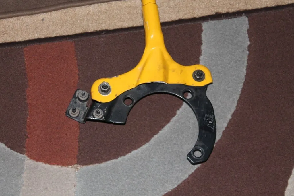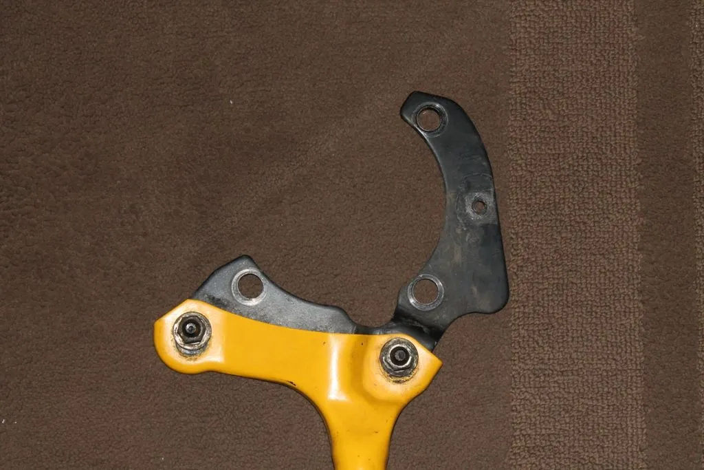 A yellow strut bar with complete brackets and nuts.