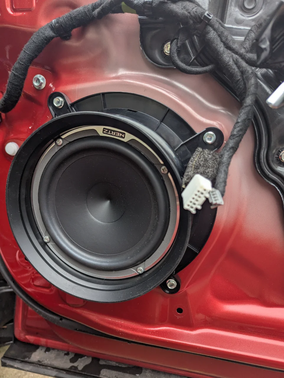 Inside of all 4 doors, I added Killmat soundproofing, as well as the rear wave cancellation foam that came with the NVX silicone speaker rings that can be seen in the above pics.